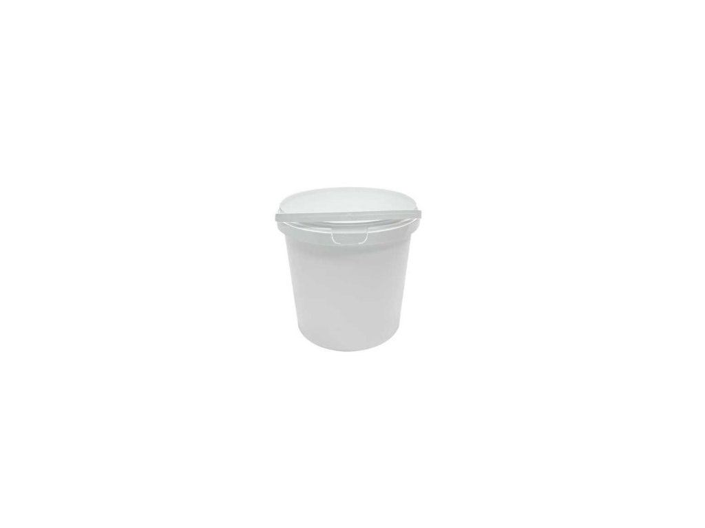 Kelímek/ malý kbelík v bílém provedení. Vhodný pro distribuci a uchování smetany, jogurtu, tvarohu, nakládaných sýrů a dalších tekutých i pevných materiálů.