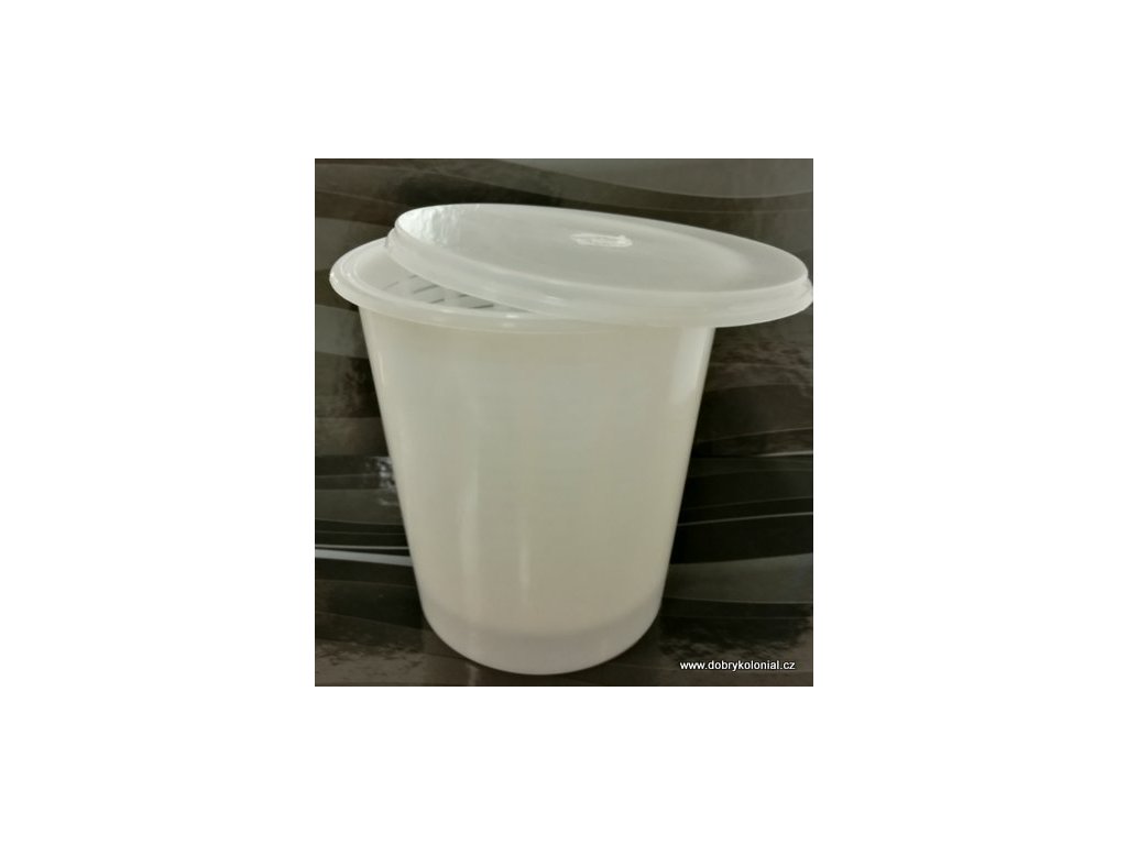 | Materiál | pevný plast, vhodný pro styk s potravinami, označení PP, mléčně-transparentní |