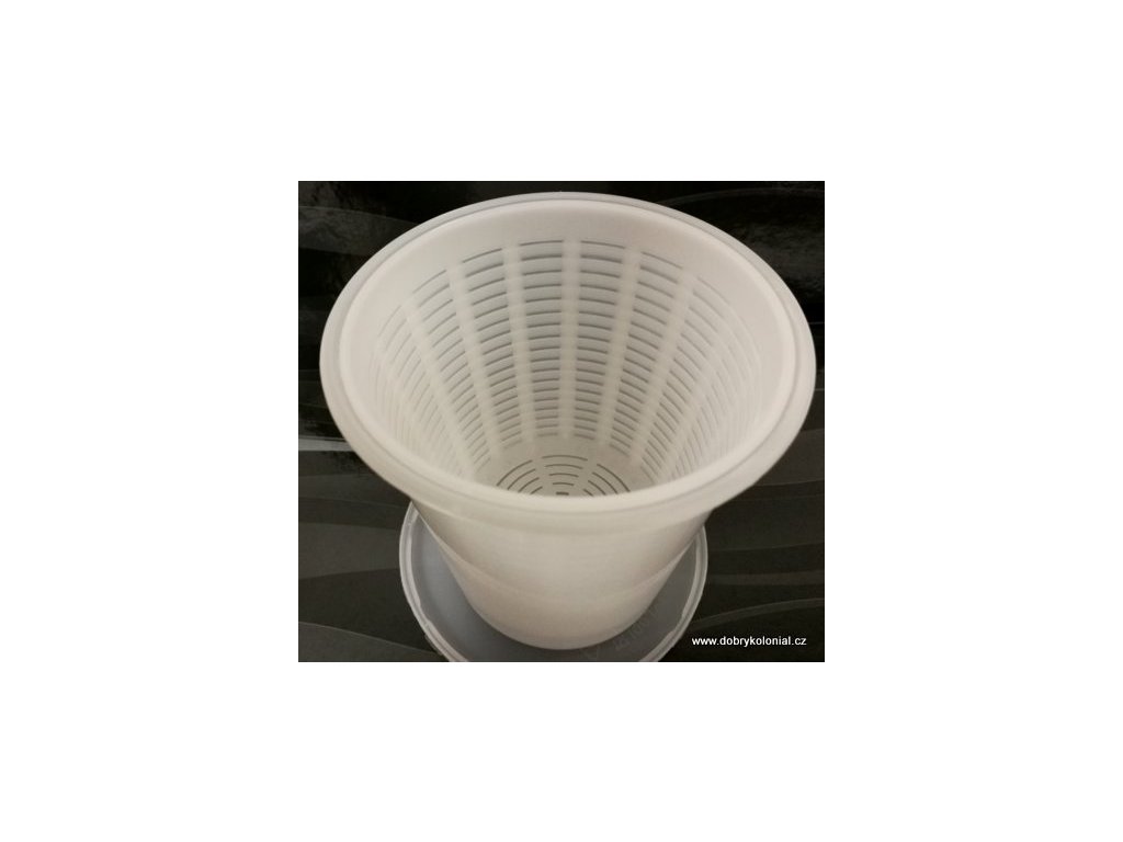| Materiál | pevný plast, vhodný pro styk s potravinami, označení PP, mléčně-transparentní |