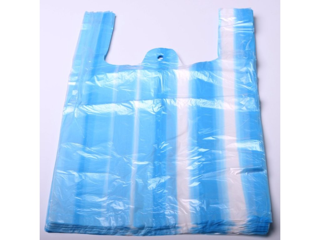 Mikrotenové tašky s modrými a bílými pruhy - 100ks